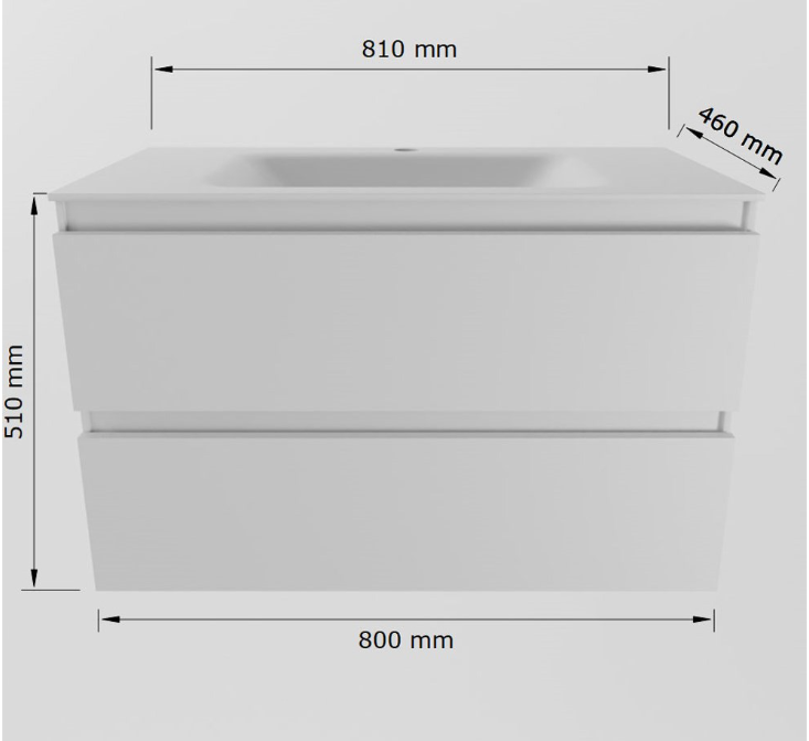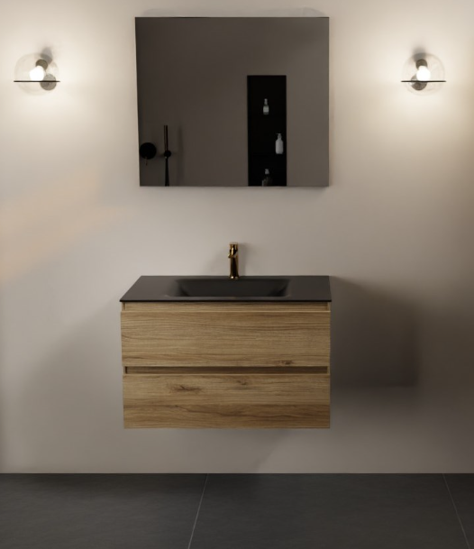 AIVY 80cm badmeubel Chai, wastafel Urban solid surface midden 1 kraangat met Spiegel
