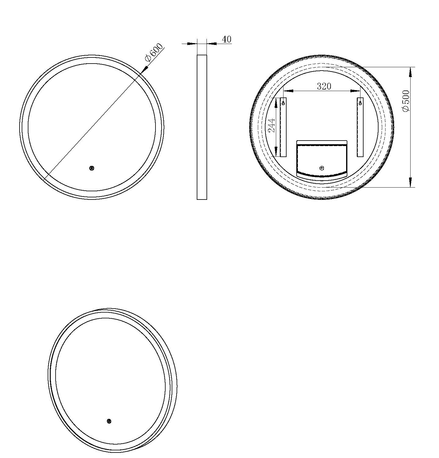 Lista Nera spiegel rond met LED verlichting, dimbaar 60 cm mat zwart