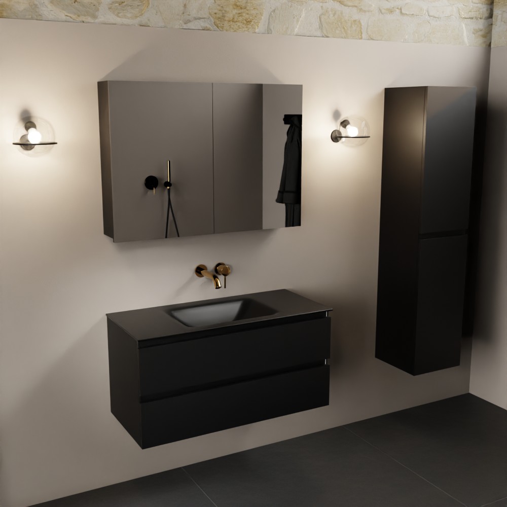 MONDIAZ AIVY 100cm badmeubel Urban, wastafel Urban solid surface midden zonder kraangat met spiegelkast