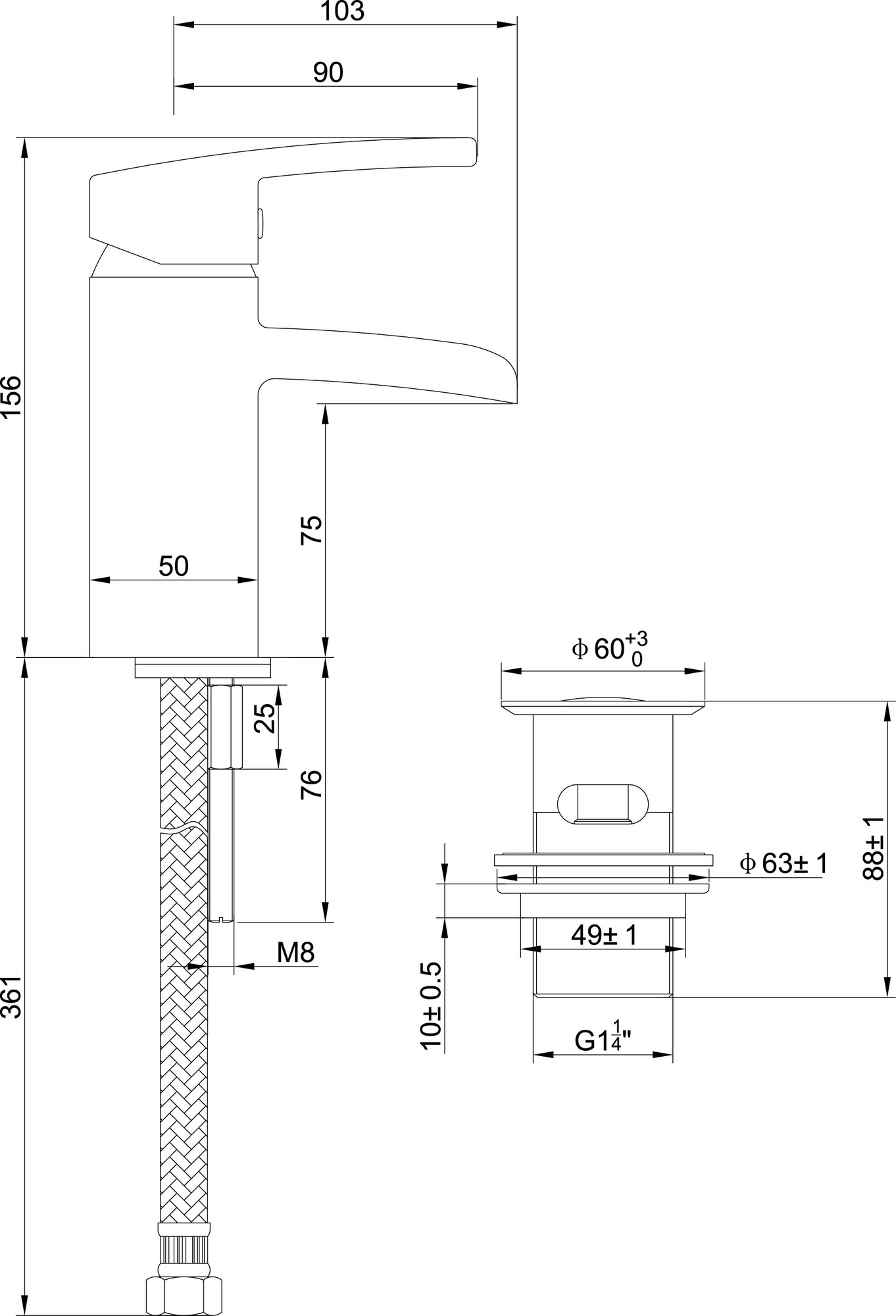 Rombo waterval-wastafelkraan chroom