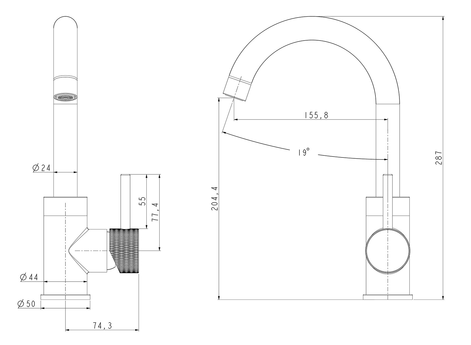 Wiesbaden Ribbd wastafelmengkraan met draaibare uitloop geborsteld staal