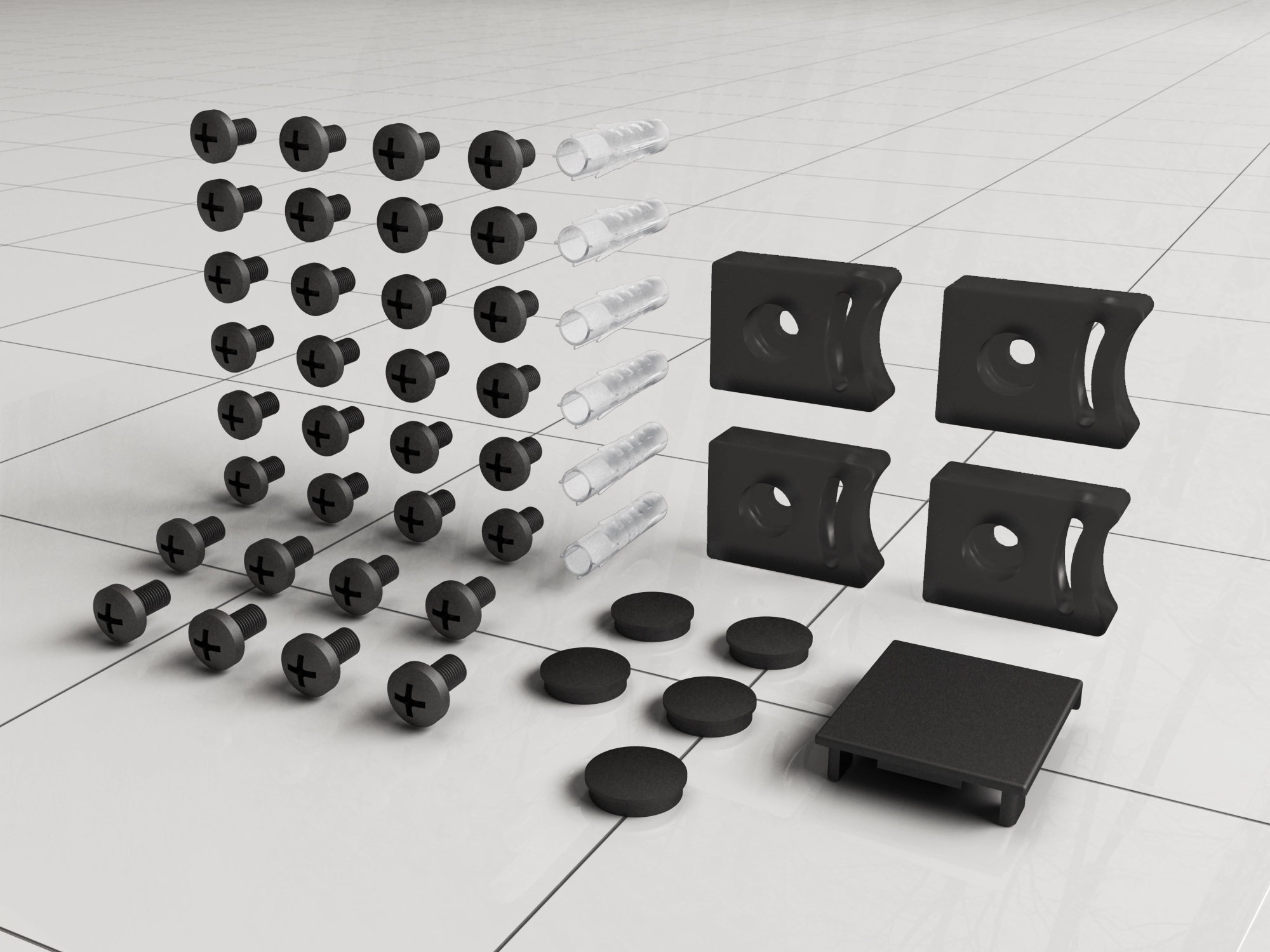 Wiesbaden schroevenset, afdekkapje en deurstop voor Skyline schuifbare nisdeur
