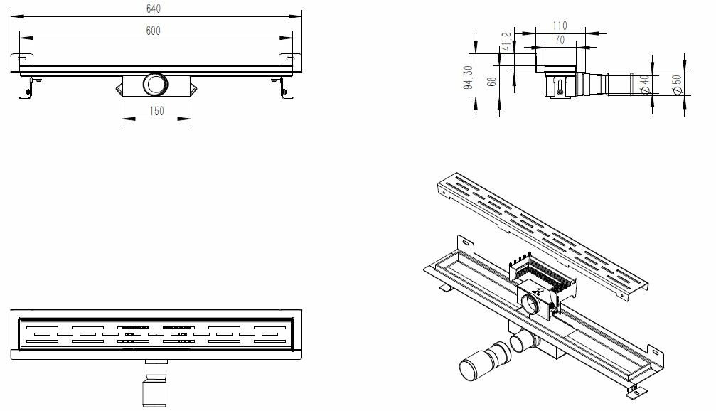 Eco RVS douchegoot met muurflens 60cm